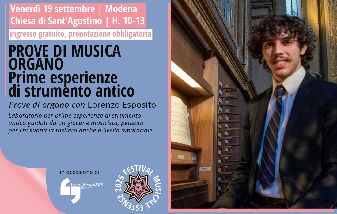 Ven 19/09 | 10:00 PROVE DI MUSICA: ORGANO. Prime esperienze di strumento antico chiesa di s. Agostino MODENA chiesa di s. Agostino