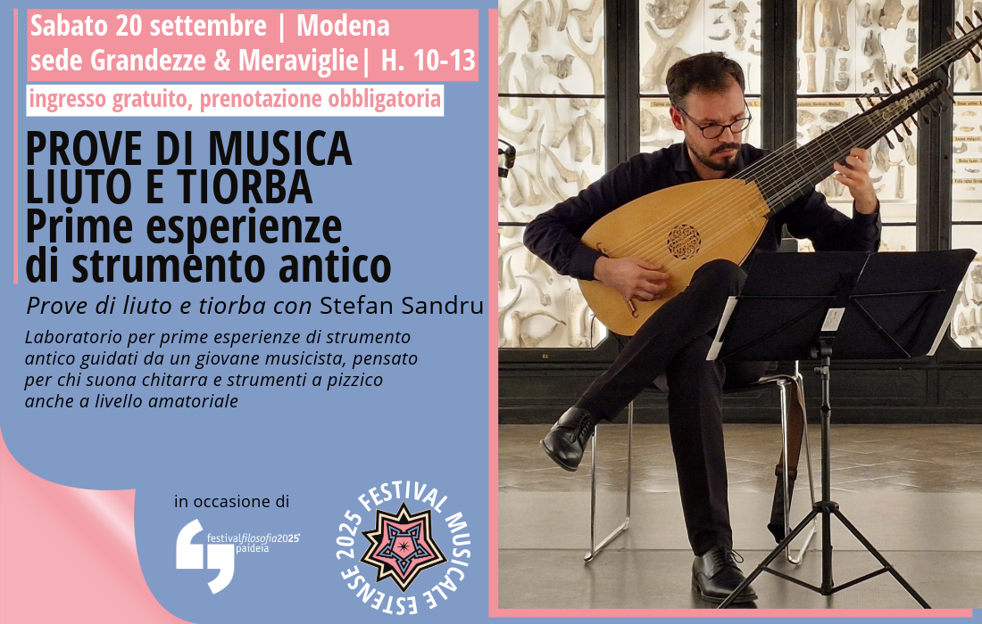Sab 20/09 | 10:00 PROVE DI MUSICA: LIUTO E TIORBA. Prime esperienze di strumento antico Sede Grandezze & Meraviglie, Via Ganaceto 40B Modena Sede Grandezze & Meraviglie, Via Ganaceto 40B